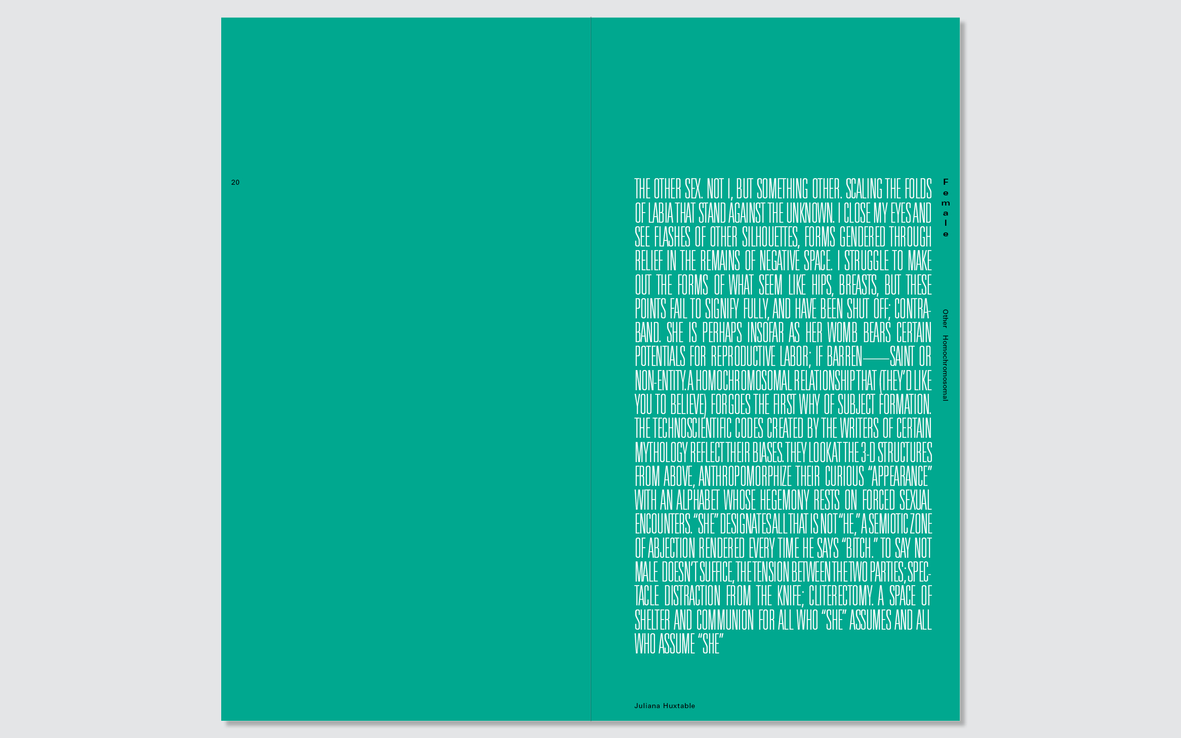Gender Talents explores the landscape of self-determined gender through the lenses of art and architecture. It builds off the work of progressive sexologist Esben Esther P. Benestad, who has observed seven distinct genders in their practice as a therapist in Norway. Three outstanding voices in contemporary art and architecture reflect on these seven themes, intersecting gender with notions of race, sexuality, desire and the built environment. Kimberly R Drew couples each gender with the work of a contemporary black artist, ruminating on the intersections through seven sharp texts. Juliana Huxtable contributes seven decrees which bleed in to harrowing poetics from a sentient, omniscient narrator. Andreas Angelidakis works through seven material metaphors, pairing each gender with a building or chair.