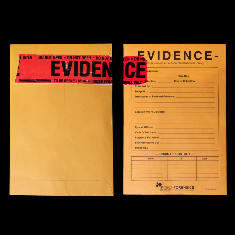 A police envelope with a tamper-proof seal containing fourteen eerily provocative 4x6 glossy photos depicting a devious C8LYN in an unknown setting, that is somewhere between a Film Noir set and a small-town VFW.